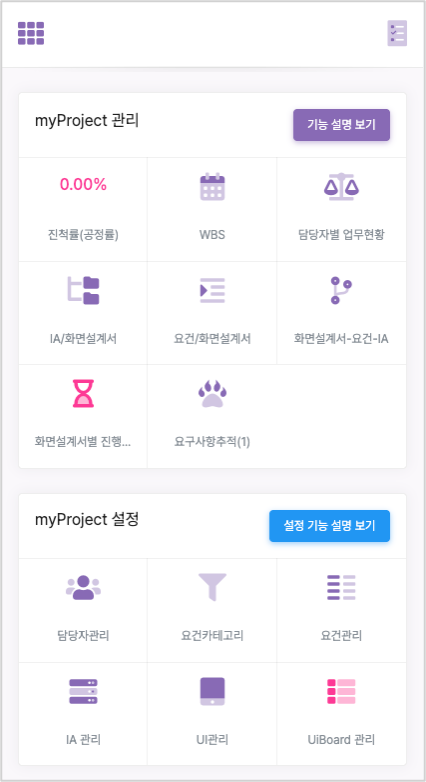 - UI 등록 후, 상세관리에서 기능별 담당자/ 일정을 설정할 수 있습니다